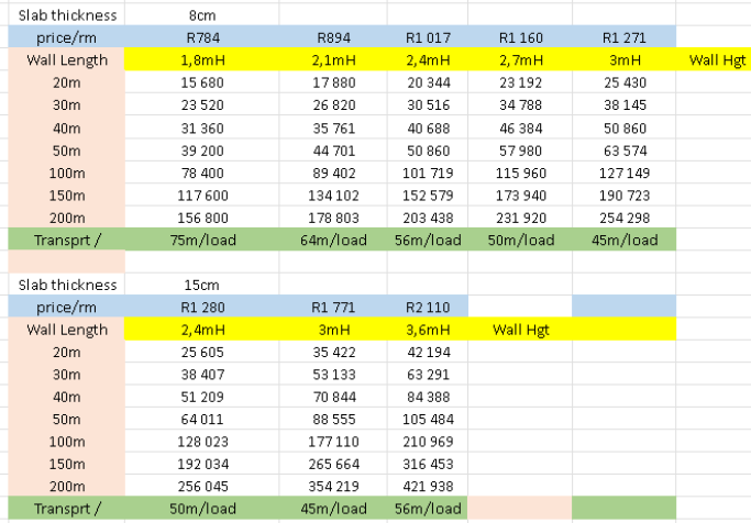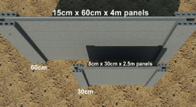 150mm thick x 600mm wide x 4m panels